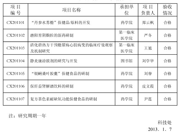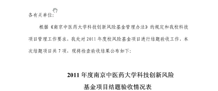 关于公布2011年度南京中医药大学科技创新风险基金项目验收结果的通知
