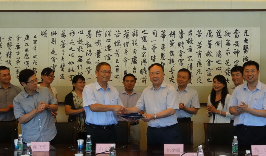 段金廒副校长和范克银总裁共同签署了合作协议,与会双方就应对中药制药工业对膜科学技术的重大需求,着力攻克中药膜分离技术产业化的关键技术瓶颈,努力解决中药与天然药物生产中的提取、分离、污水处理等一体化的膜工程技术问题和创新大学与企业的合作模式,解决我国中药产业“实验室”与“产业化”衔接薄弱的问题,探索可激发科研和产业双向活力的“产学研”合作体制与运行机制等合作方向进行了沟通和交流。