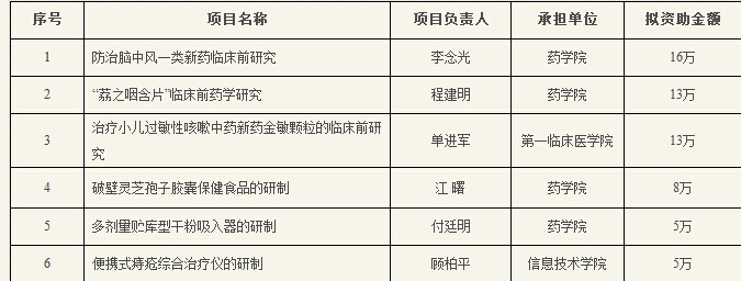 2013年度南京中医药大学科技创新风险基金拟资助项目公示