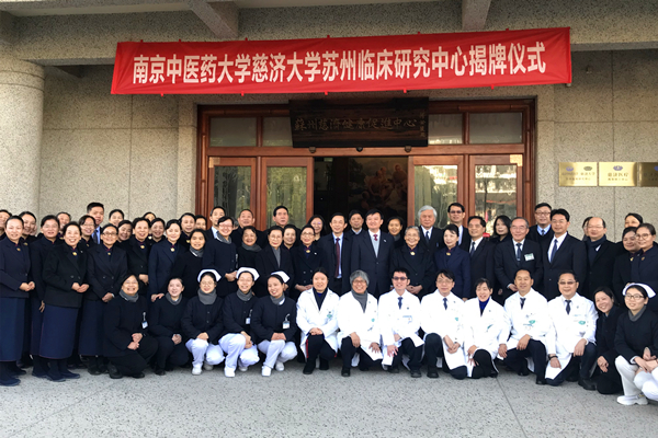 018年12月24日,“南京中医药大学 慈济大学苏州临床研究中心”揭牌仪式在苏州慈济门诊部举行。南京中医药大学党委书记程纯教授、副校长孙志广教授,慈济慈善事业基金会(以下简称慈济基金会)林碧玉副总执行长,慈济大学校长王本荣教授,花莲慈济医学中心院长林欣荣教授以及南京中医药大学、苏州慈济门诊部相关部门人员出席揭牌仪式。