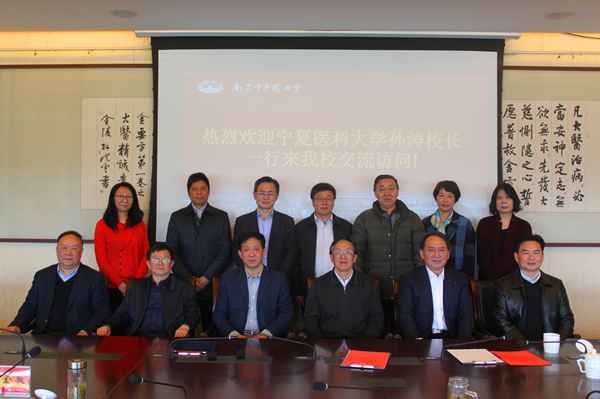 3月19日上午,宁夏医科大学孙涛校长一行4人来我校交流访问。全国政协常委、江苏省政协副主席、我校校长胡刚教授,副校长黄桂成教授,副校长谭仁祥教授,段金廒教授,校长办公室、发展规划处、人事处、教务处、科学技术与产业处及研究生院负责人参加了交流,交流会由黄桂成副校长主持。