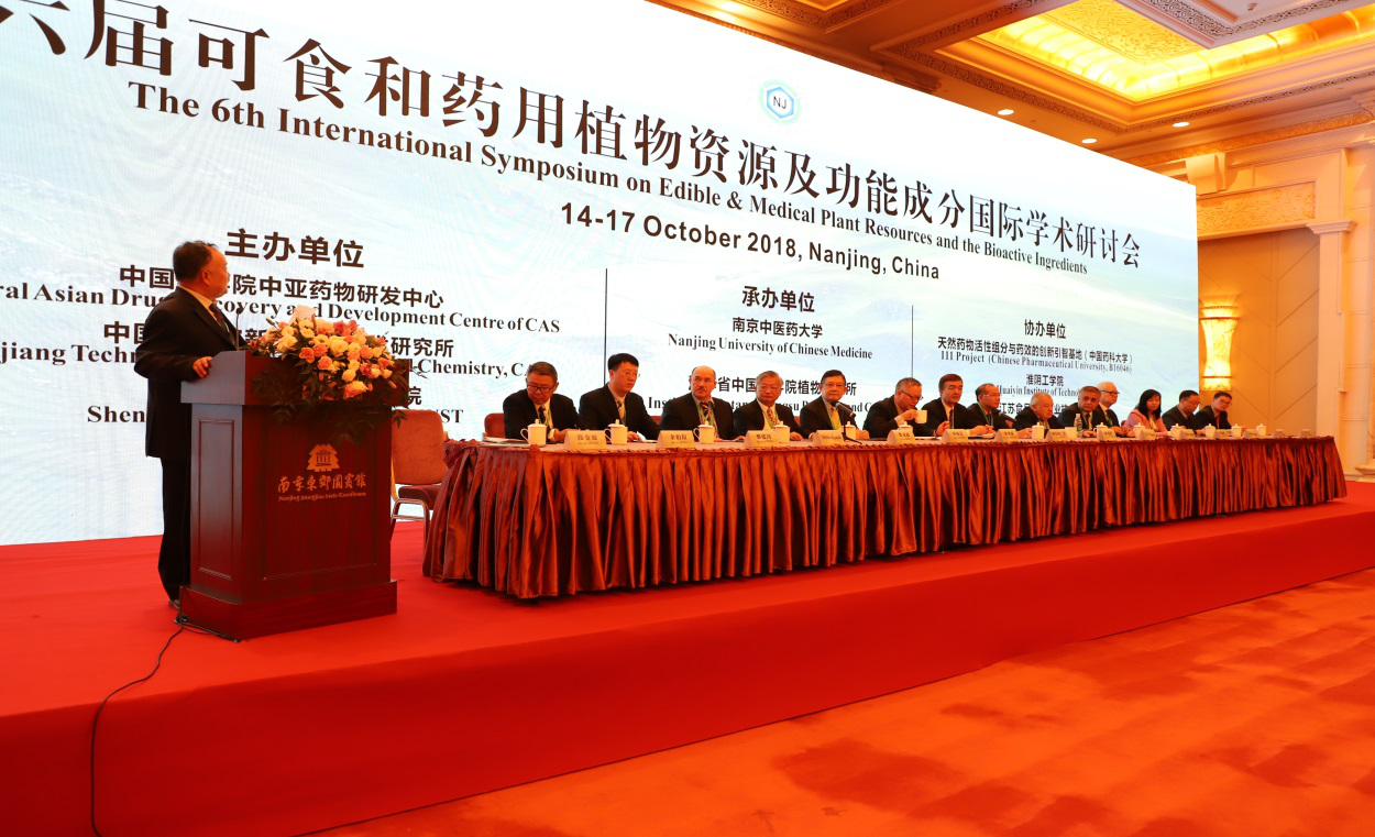 2018年10月14日至17日, 以“一带一路大健康产业发展”为主题的第六届可食和药用植物资源及功能成分国际学术研讨会在江苏南京东郊国宾馆举办,来自中国、美国、澳大利亚、以色列、乌兹别克斯坦、塔吉克斯坦、吉尔吉斯斯坦、哈萨克斯坦、中国香港、中国澳门、中国台湾等国家和地区的102家单位260余名参会代表齐聚古都南京,共商可食和药用植物资源开发利用与产业的创新与发展。本次大会由中国科学院中亚药物研发中心、中国科学院新疆理化技术研究所、香港科技大学深圳研究院主办,南京中医药大学江苏省中药资源产业化过程协同创新中心、江苏省中国科学院植物研究所联合承办,天然药物活性组分与药效的创新引智基地(中国药科大学)等单位协办。开幕式由南京中医药大学江苏省中药资源与产业化过程协同创新中心主任段金廒教授主持。