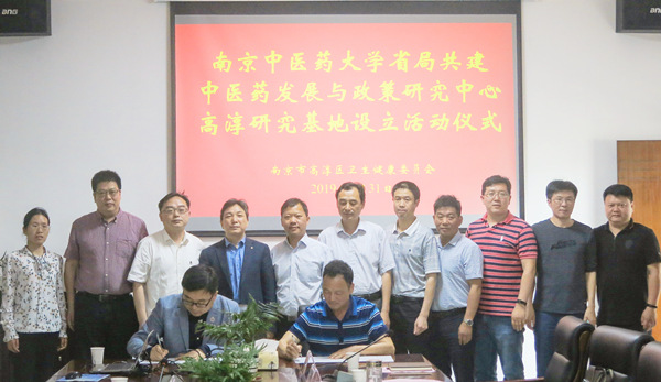 5月31日,南京中医药大学省局共建中医药发展与政策研究中心与南京市高淳区卫生健康委员会合作研究基地签约暨揭牌仪式在高淳举行。校党委副书记、副校长张策华,卫生经济管理学院党委书记姚峥嵘、卫生经济管理学院院长、中医药发展与政策研究中心主任田侃,高淳区副区长丁耀,区卫健委副主任王小君,高淳人民医院、高淳中医院、东坝医院负责人及校地双方相关人员出席签约仪式。