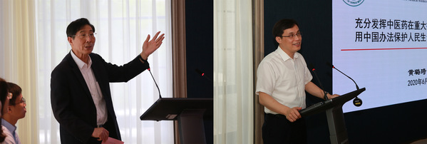 中国科学院院士陈凯先,中国中医科学院院长、中国工程院院士黄璐琦,中国科学院院士蒋华良,中国工程院院士、国医大师王琦,国医大师邹燕勤围绕学习贯彻习近平总书记关于中医药工作的系列重要论述,分别以“深刻认识中医药在当代的战略地位和历史使命”“充分发挥中医药在重大疫情防控中的作用,用中国办法保护人民生命安全和身体健康”“中医药发展的新机遇”“从中医药发展史、国家战略与发展方向领会习近平总书记在中医孔子学院的讲话精神”“守正传承做楷模,创新发展争先锋”为题,结合各自工作实践和理论研究成果,就如何“传承精华,守正创新”作主旨报告。