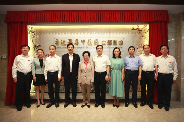 会前,在程纯、胡刚陪同下,与会领导和嘉宾参观了学校精心策展的“习近平与中医药”主题展馆。陈星莺、陈凯先、黄璐琦、蒋华良、邹燕勤共同为展馆揭幕。