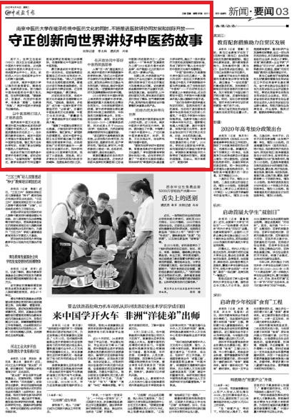6月16日,《中国教育报》3版新闻·要闻版,报道我校在传承传统中医药文化的同时,不断推进医教研协同发展和国际开放——守正创新向世界讲好中医药故事。