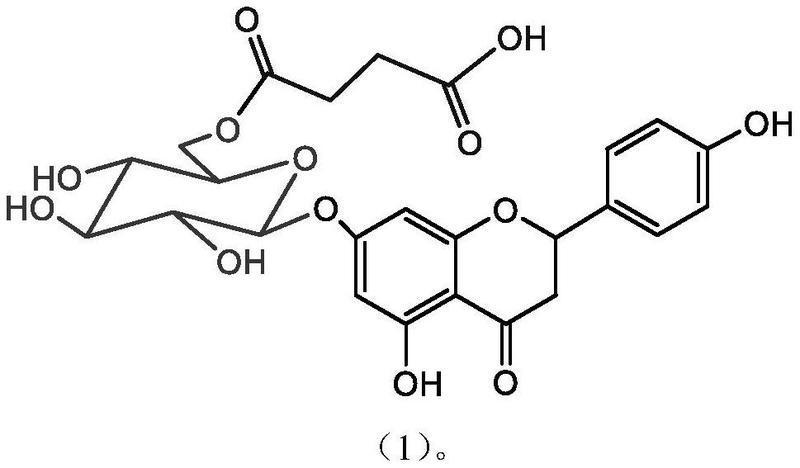 本发明公开了以下式(1)所述的琥珀酰柚皮苷为活性成分的药物,及其在制备抗菌、抗骨质疏松药物方面的应用,属于医药技术领域。本发明同时公开了琥珀酰柚皮苷的制备方法。本发明所提供的琥珀酰柚皮苷作为一种新的柚皮素衍生物具有水溶性高、抗菌活性强、抗骨质疏松活性强等特点,为抗菌剂及抗骨质疏松药物提供了新的药物选择。